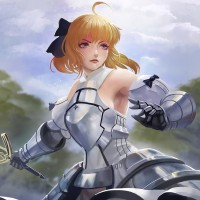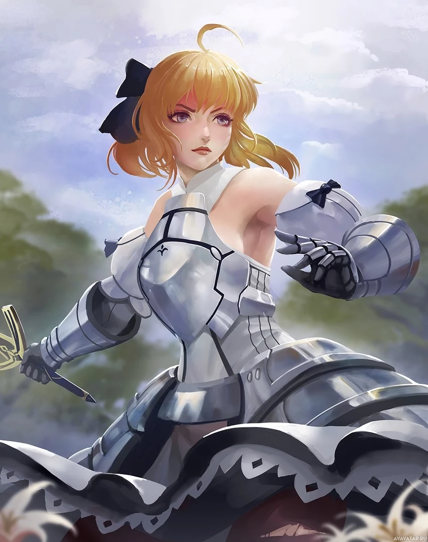 blonde hair and is wearing armor with a fantasy design, suggesting she might have a role in battle or adventure within her storyline. She's also holding what seems to be a weapon, possibly a sword, which further emphasizes her combat-oriented theme. The background gives the impression of