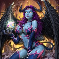 a fantasy character with the appearance of a succubus, a mythical being often associated with temptation and lust. She is shown in