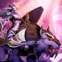 The image depicts an illustration of a character riding a wolf. This character is wearing armor and holding a shield, suggesting that they might be a knight or warrior from a fantasy setting like "Warcraft," where such characters are often referred to as "drow" if they belong to