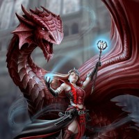 red dragon with a prominent serpentine tail. The dragon's head has a fierce expression, and the overall tone of the image suggests it could be from