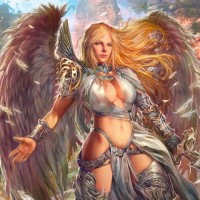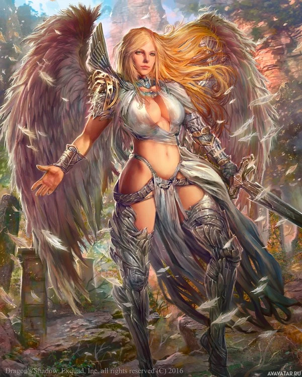 The image depicts a fantasy-themed illustration of an angel. The character is portrayed with