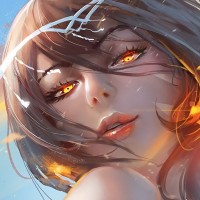 a subtle glow or aura around it, which adds to the fantastical or magical feel of the artwork. The background is abstract with what seems to be fire-like elements that give off