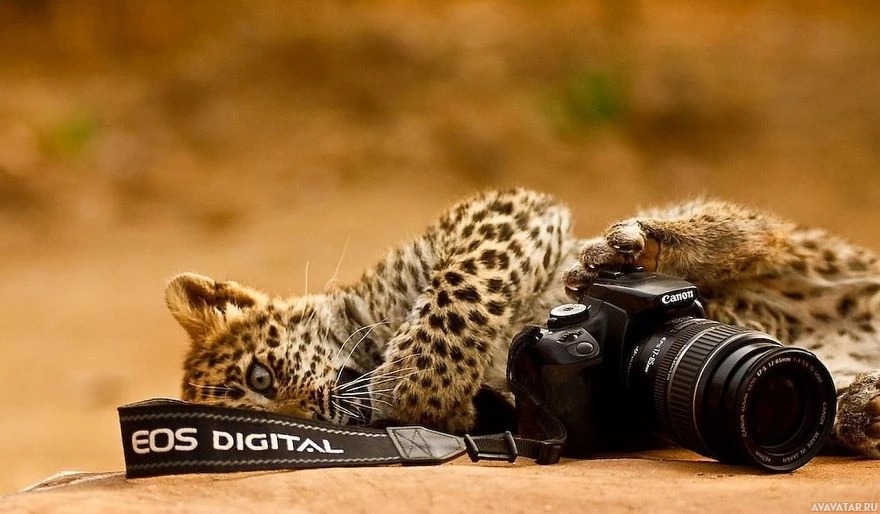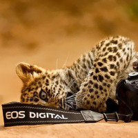 a state of rest. Beside the leopard, there are two pieces of photography equipment: