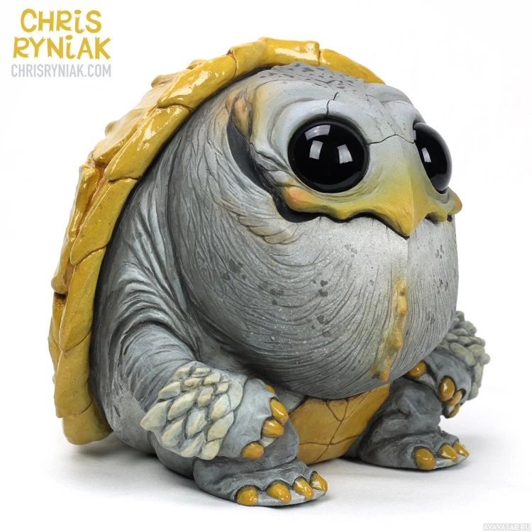 shell texture and color, with darker areas suggesting the scutes, and a lighter underside. The head is stylized in a way that gives it a somewhat cute or anthropomorphic appearance, with