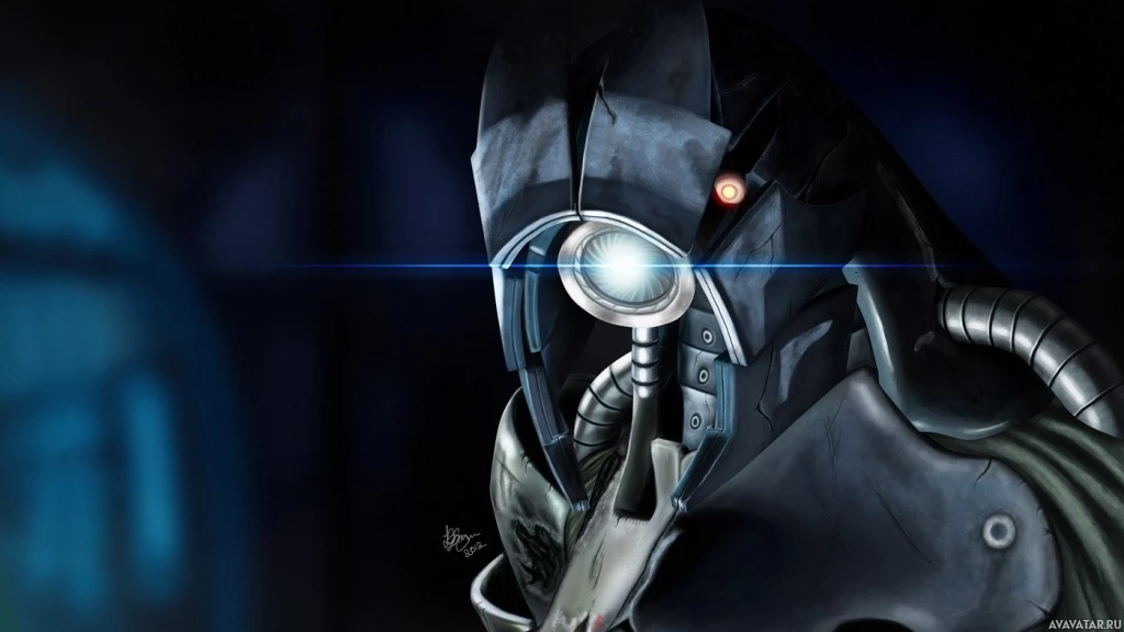 The image shows a character from the "Mass Effect"