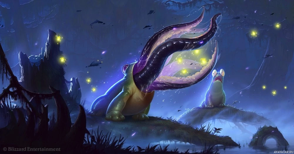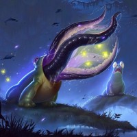 a fantasy scene with a whimsical atmosphere. In the center, there is a character that appears to be
