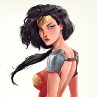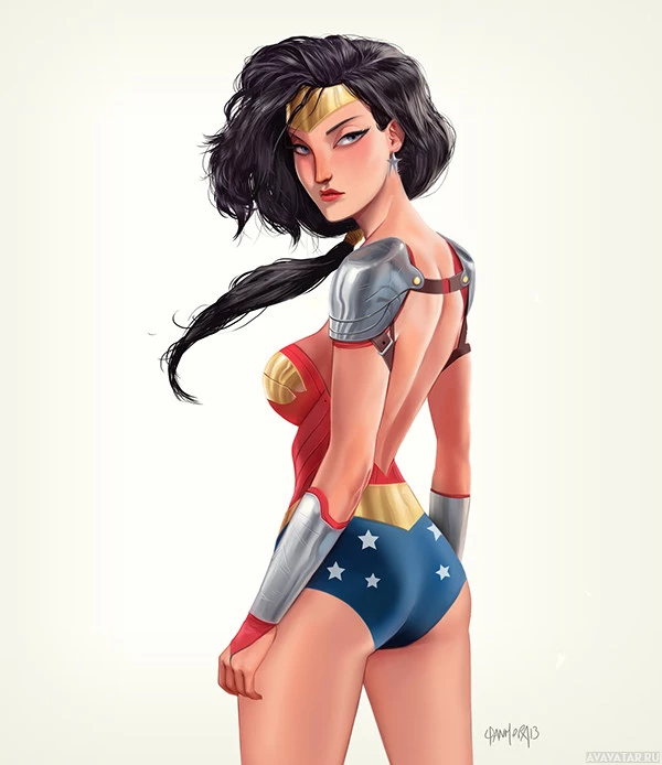 The image features an illustration of Wonder Woman, a well-known fictional superheroine from