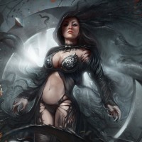 The image depicts a fantasy-style artwork featuring