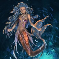 a fantasy character, depicted as a mermaid. The mermaid has long