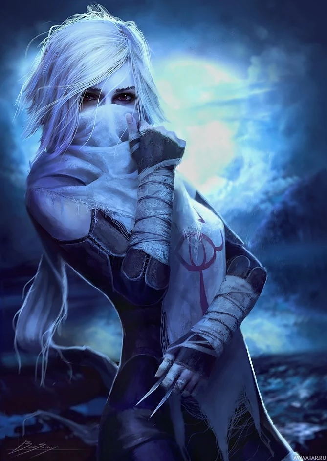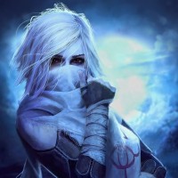 a female character with blonde hair. She is wearing a mask that obscures her face, which adds an element of mystery to her appearance. Her attire includes what looks like armor or