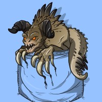 In the image, there is a cartoon illustration of a creature that appears to be a deathclaw from