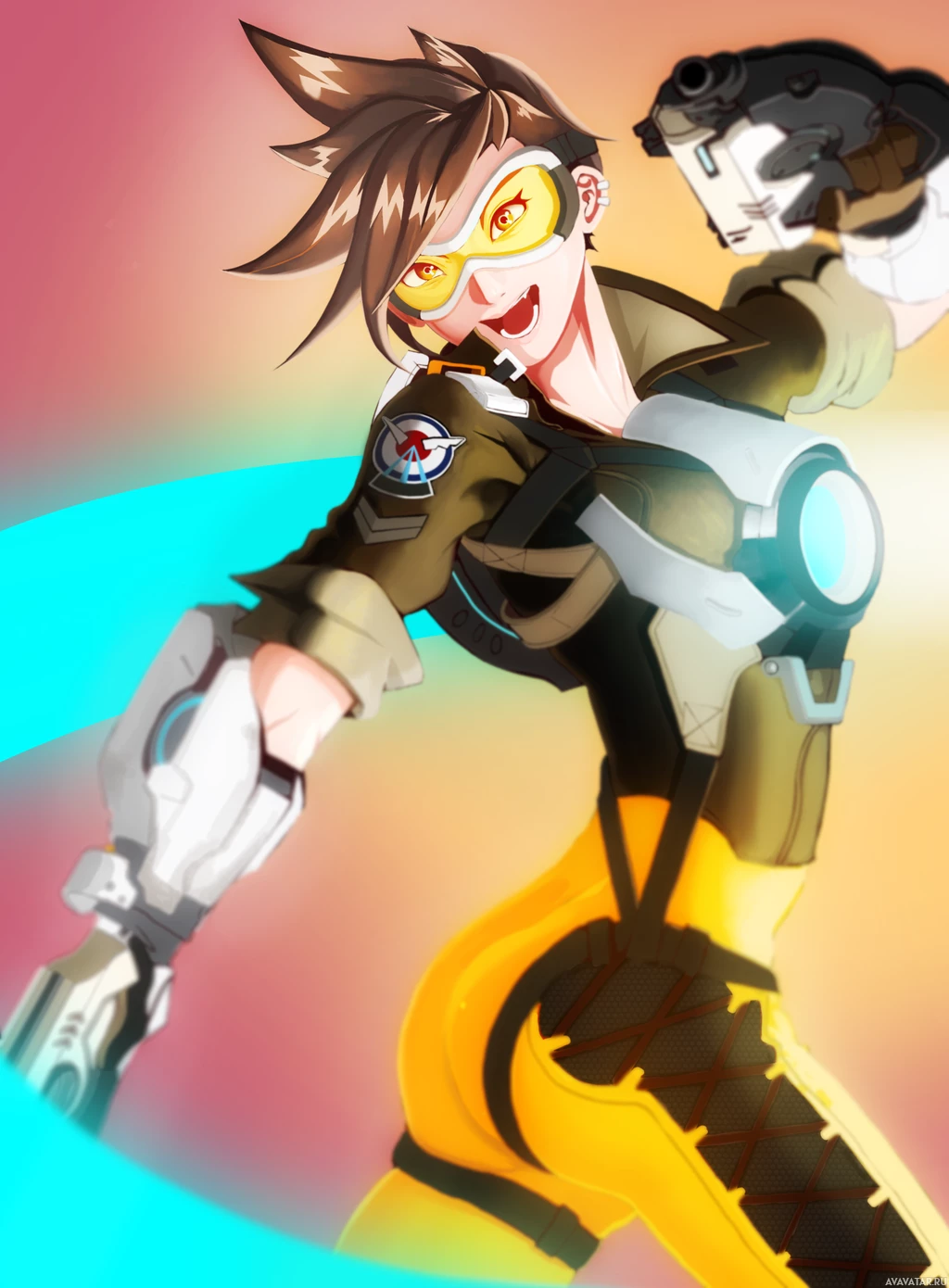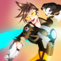 the video game "Overwatch." This character is known as Tracer, and she is depicted in her