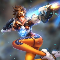 the video game Overwatch. This is Tracer, one of