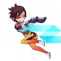 The image features an illustration of the character Tracer from