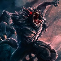 The image features a fantasy artwork of a werewolf. The creature is depicted with