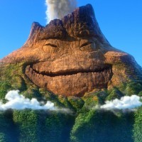 The image shows an animated character that appears to be a volcano with a smiling face. This is likely from the animated film "Moana," where the volcano character is named Te Fiti.