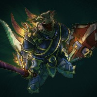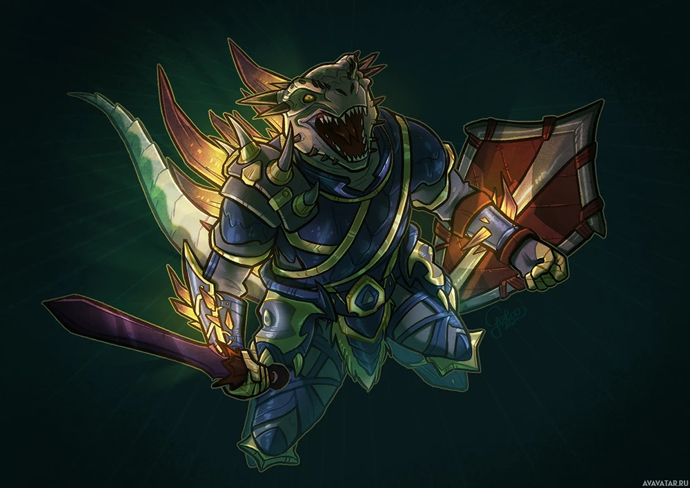 Elder Scrolls." This character is depicted as a humanoid with the head and tail of a dragon, a characteristic feature of the Argonians in the lore. The character is wearing armor and holding a sword, giving off an impression of being ready for battle or adventure.