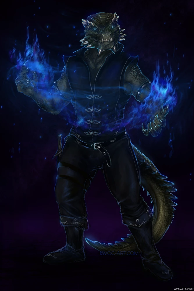 The image shows a stylized, fantasy-themed character that appears to be an Argonian from