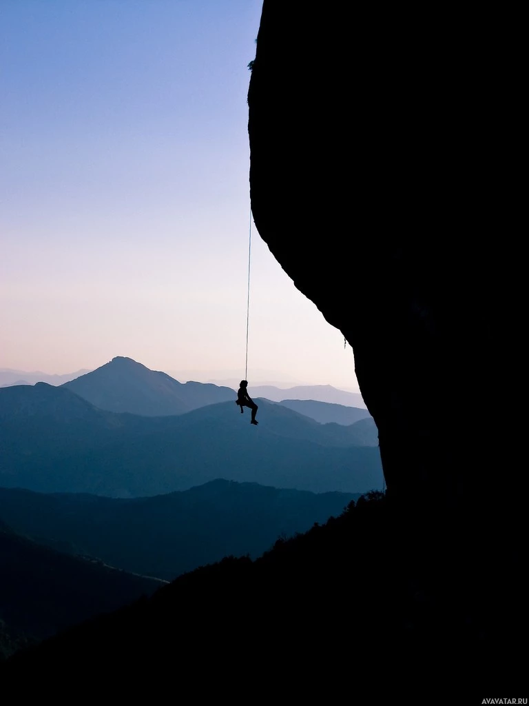 a silhouette of an individual engaged in mountaineering. They are on