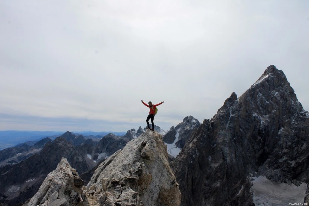 The image shows a person standing on the top of