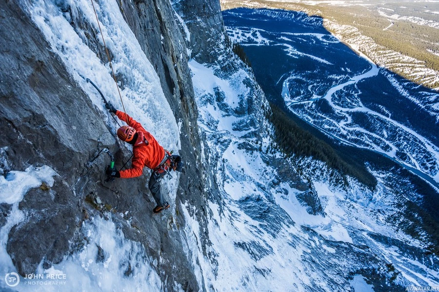 the steep incline and icy conditions, suggesting an environment typical of alpine or mountaineering activities.