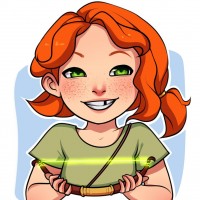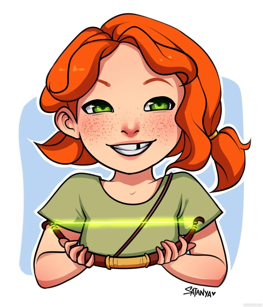 red hair tied in pigtails and is wearing what looks like a green outfit or shirt. She is holding a staff-like object that might be a reference to the Windranger's ability to summon