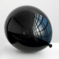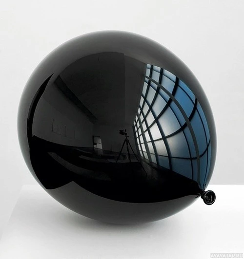 The picture shows a black, reflective ball positioned in
