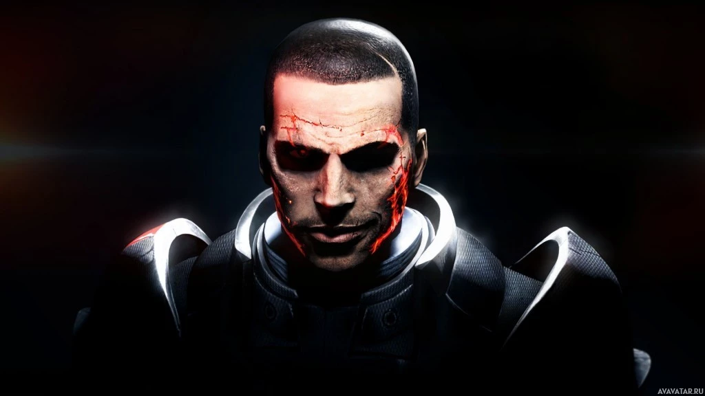 the video game Mass Effect. He is depicted in his standard appearance, with