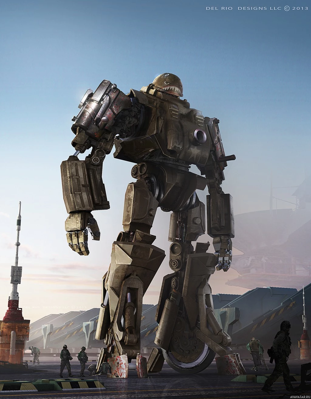 The image features a large robot in