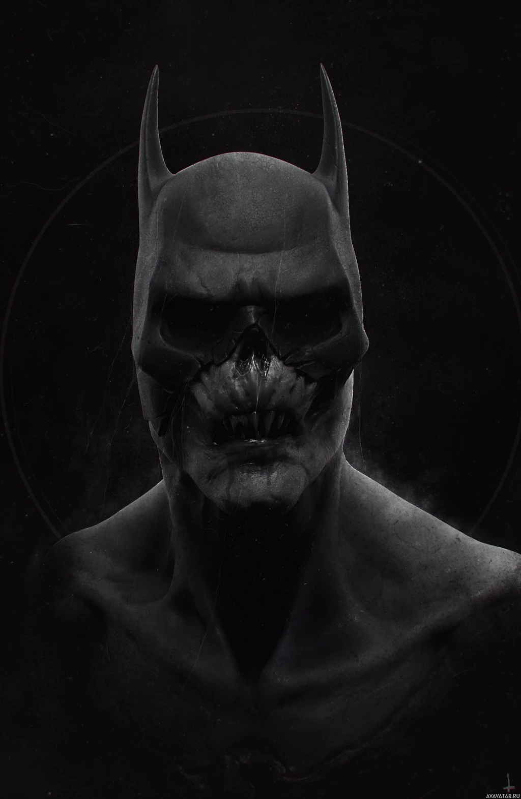facial expression. This blend of Batman and vampire motifs creates a unique and darker take on