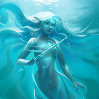 an aquatic creature, possibly a fish or dolphin, given its sleek design. The mermaid is holding what seems to be a trident, which is often associated with characters from mythology and fantasy stories who possess