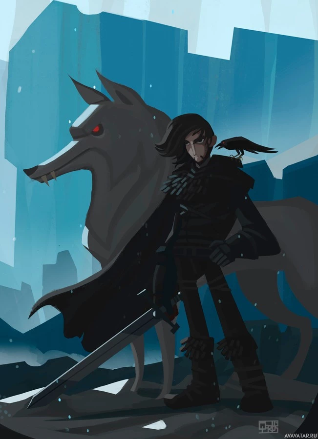 The image depicts a character who appears to be inspired by Jon Snow from "