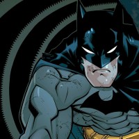 Gotham City. The background suggests a dark or mysterious setting, fitting for Batman's