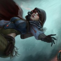 a female character known as the Demon Hunter from the video game "Diablo." The art style suggests it may be inspired by the game's aesthetic or fan-made artwork. She is depicted in action, with