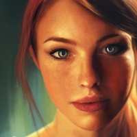 a young woman with red hair. She appears to be looking slightly away from the viewer, giving an introspective or thoughtful vibe. Her skin is fair and she has delicate features, such as her nose and lips, which are well-defined. There's