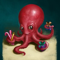 special occasion or event. There are also candy canes visible next to the octopus, which is often associated with