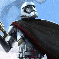 the Star Wars franchise, dressed as an Imperial stormtrooper. This character is depicted in a stylized and possibly humorous manner, given the pose and