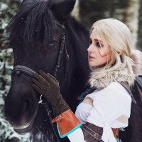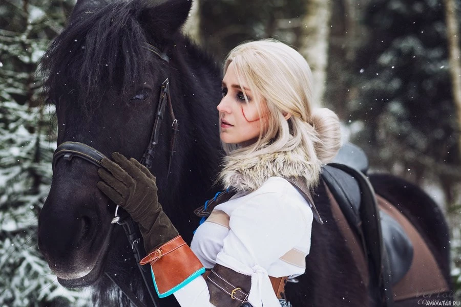 The image shows a person dressed in costume, reminiscent of the character Ciri from