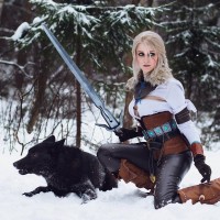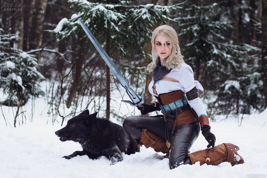 The image shows a person dressed as Ciri, a character from