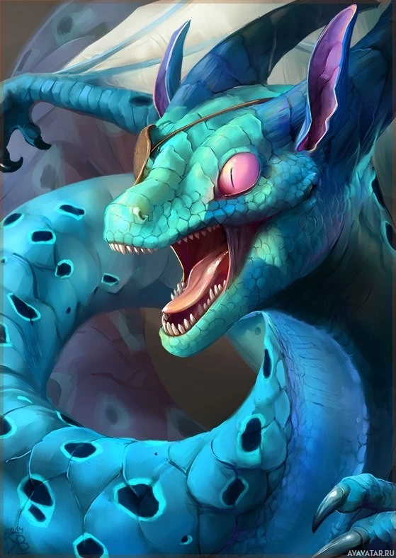 dragon character. It has a predominantly blue color scheme with some lighter blue or white patterns on its body, resembling scales. Its eyes are red and it appears to be in mid-roar or shout, as indicated by