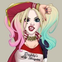 The image you've shared is an illustration of a character known as Harley Quinn. This character is a fictional supervillainess in the Batman universe. She is depicted wearing her iconic costume, which includes a baseball bat as part of her accessories.