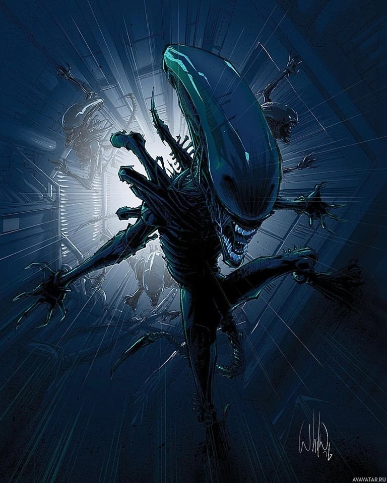 film series. It is an illustration of the iconic creature known as the Xenomorph, which has become synonymous with the sci-fi