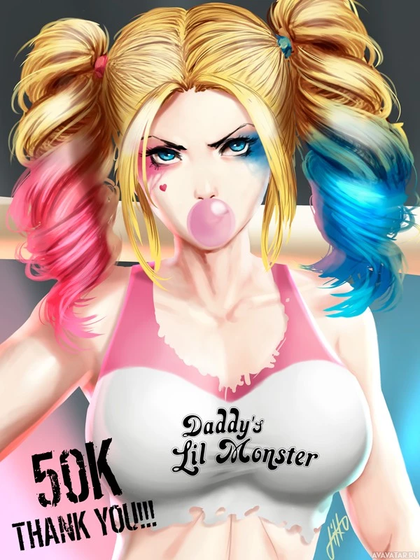 text overlay indicates that this image has reached 50,000 "likes" or some form of recognition on an online platform, as indicated by the phrase "Daddy's Lil Monster" and a thank you message to those who have shown support.