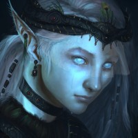 various accessories such as intricate jewelry and what seems to be magical or mystical tattoos on the face and neck. The style of the artwork suggests a modern take on traditional fantasy, with a focus on detailed