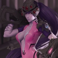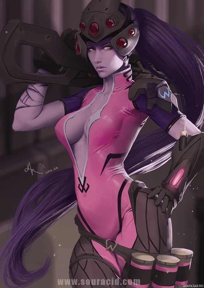 the video game Overwatch. The character is Widowmaker, known for her