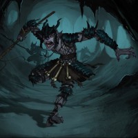 На картинке изображен анимированный персонаж, который кажется оборотнем или ликантропом из серии видеоигр «Старшие свитки». Этот персонаж находится в пещерной среде, возможно, представляя подземные пещеры, обычно встречающиеся в этих типах игр. Художественный стиль детализируется и динамичен, захватывая чувство действия и движения, как если бы существо было в середине прыжка или боя.