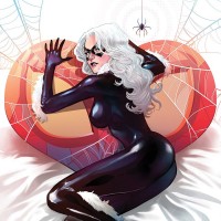 Black Cat from the Spider-Man comic series. The character is depicted in a stylized, artistic manner with exaggerated features such as