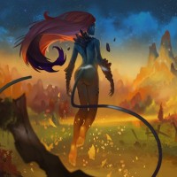 magical energy surrounding the character. The overall atmosphere of the picture is dramatic and otherworldly, fitting for