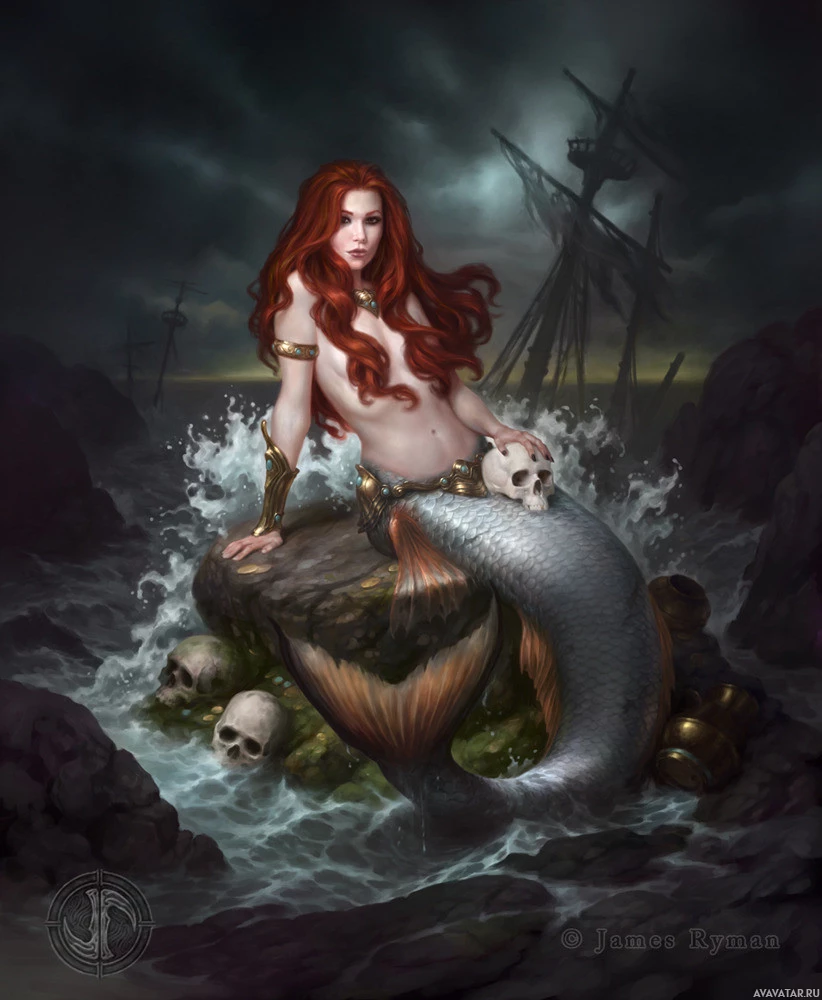 The image shows a fantasy-themed artwork of a mermaid. She has