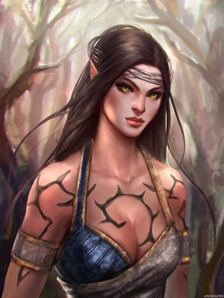 The image is a digital artwork of an elven